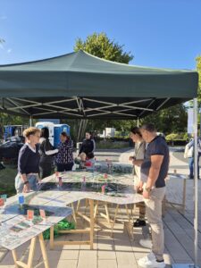 Das Fördergebietsmanagement war mit einem Informations- und Aktions-Pavillon vor Ort und bot unter anderem Glitzertattoos an – auch mit dem beliebten „Grünen-Ypsilon“-Logo. Besonders bei Familien, Kindern und Jugendlichen fand dieses Angebot großen Anklang. Die entspannte Festatmosphäre bot eine ideale Gelegenheit für ungezwungene Gespräche mit der Bewohnerschaft.